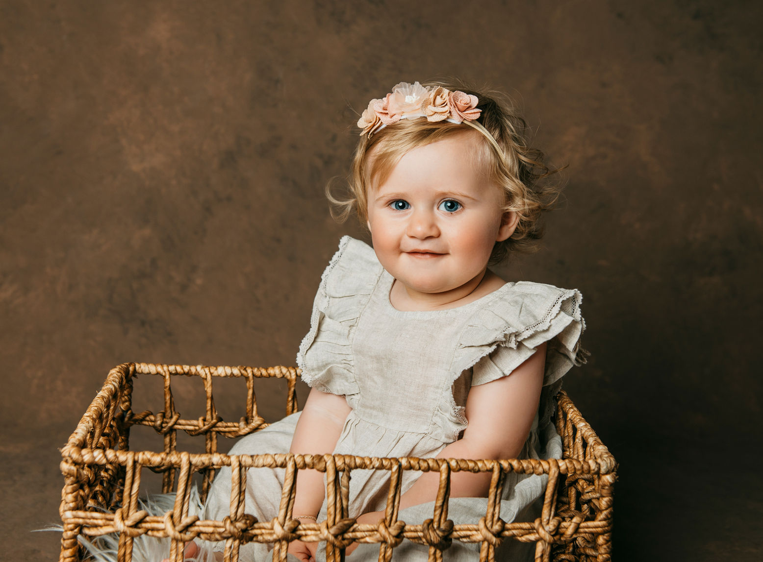 Den beste tiden for babyfotografering er gjerne mellom 6-9 mnd. Da er babyen blitt sterkere i kroppen og vi får lettere variasjon i bildene. Noen kan sitte selv, og de fleste støtter seg godt opp med hendene når de ligger på magen. I denne alderen får vi ofte mange fine uttrykk og smil.